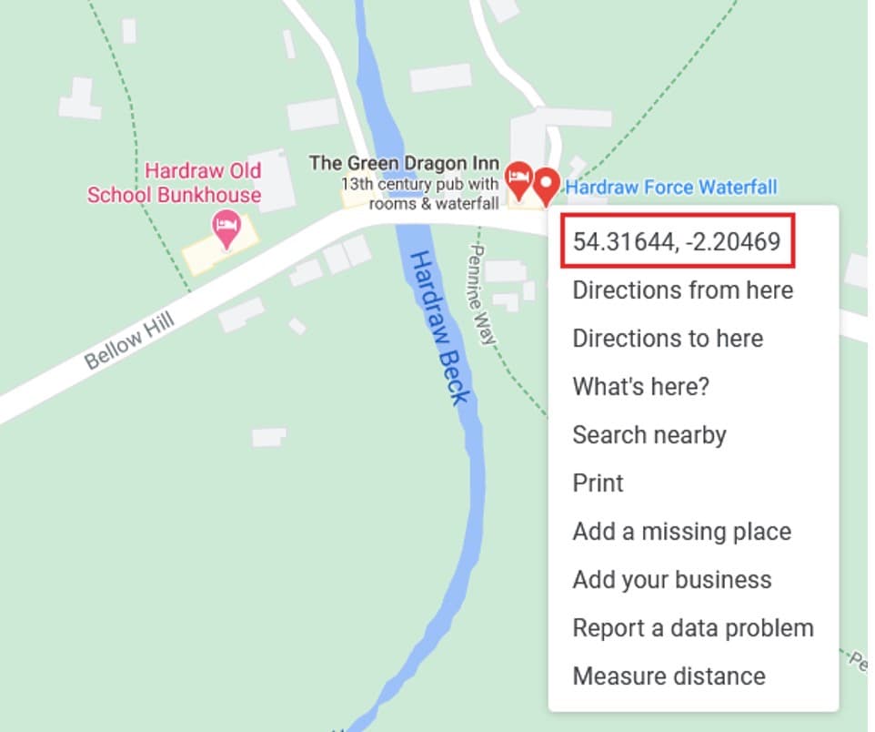 Using Google Maps again, as we did in Step 3a, search for your chosen location. When you have located it, copy the coordinates. Now open Notepad (or any text editor) and right-click to paste these coordinates there before inputting them into QGIS.